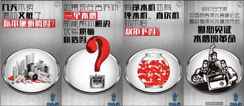 除了凈水水槽與MiniBox這兩款重量級、時尚年輕產(chǎn)品的發(fā)布上市,在年輕一代成為消費核心群體的今天,歐琳還采取了全新的社會化營銷手段——通過大量的病毒海報、視頻、H5等的創(chuàng)作和傳播,不僅提升了品牌活力、放大產(chǎn)品關(guān)注,擴(kuò)大消費者的痛點,還有效增加了歐琳在年輕、時尚群體中的影響力。