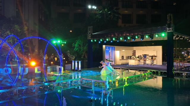 6月6日晚上8點,歐琳整體廚房在以“多10cm,開啟健康廚房大時代”為主題的新品發布會上,別出心裁地將舞臺搭建在上海星河灣酒店的泳池邊,以一曲優雅的芭蕾雙人舞中緩緩拉開了發布會的序幕。