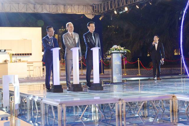 而受邀前來的近百余名嘉賓圍繞著燈光閃爍的泳池,與歐琳集團首席設計顧問曼萊克先生、歐琳集團董事長徐劍光先生及歐琳整體廚房總經理蔡勇先生共同見證了高端T系廚房的震撼亮相,同時享用著歐琳精心準備的冷餐美酒。