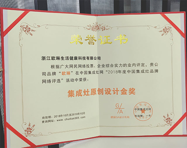 “2018年度中國(guó)集成灶十大品牌網(wǎng)絡(luò)評(píng)選”活動(dòng),由中國(guó)集成灶網(wǎng)攜手德國(guó)GA設(shè)計(jì)機(jī)構(gòu)、嘉興啟創(chuàng)全案設(shè)計(jì)發(fā)起,以“匠心”為出發(fā)點(diǎn),將產(chǎn)品設(shè)計(jì)靈感與品牌理念相結(jié)合舉辦的行業(yè)盛事。歐琳集成灶喜獲“2018集成灶原創(chuàng)設(shè)計(jì)金獎(jiǎng)”,眾望所歸!
